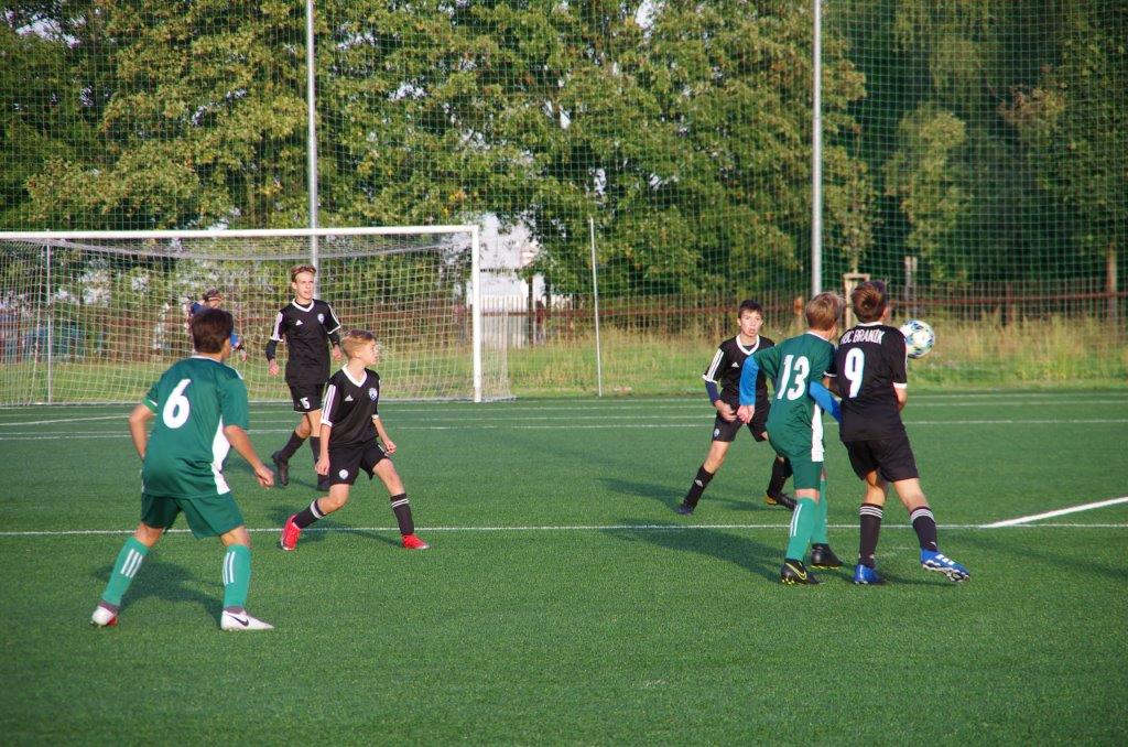V pátek se naši starší žáci představili na domácím hřišti proti"céčku". Braníku a věřili, že prodlouží svou vítěznou sérii. Do zápasu vstoupili aktivně a od počátku si vytvořili mírnou převahu, kterou v 11. minutě korunoval vedoucím gólem Kyoya. Navíc o pět minut později zvyšoval po pěkné akci Ronaldo a naši získali nad utkáním kontrolu. Ve 31. minutě přidal náš třetí gól Filip Vohralík. Od té chvíle si domácí hráči začali dovolovat i různé technické parádičky a poločas dotáhli ke zdárnému konci. Do druhé půle vstoupil soupeř s odhodláním zabojovat o změnu výsledku a hra byla podstatně vyrovnanější. Ve 47. minutě nařídil rozhodčí po faulu na našeho hráče přímý volný kop, který po hrubce gólmana hostí proměnil Filip ve svůj druhý a náš čtvrtý zásah. Utkání se zdálo být rozhodnuté, ale naši hráči polevili a dovolili tak v závěru soupeři jasné skóre zkorigovat. Díky všem a těšíme se v sobotu na Tempu.